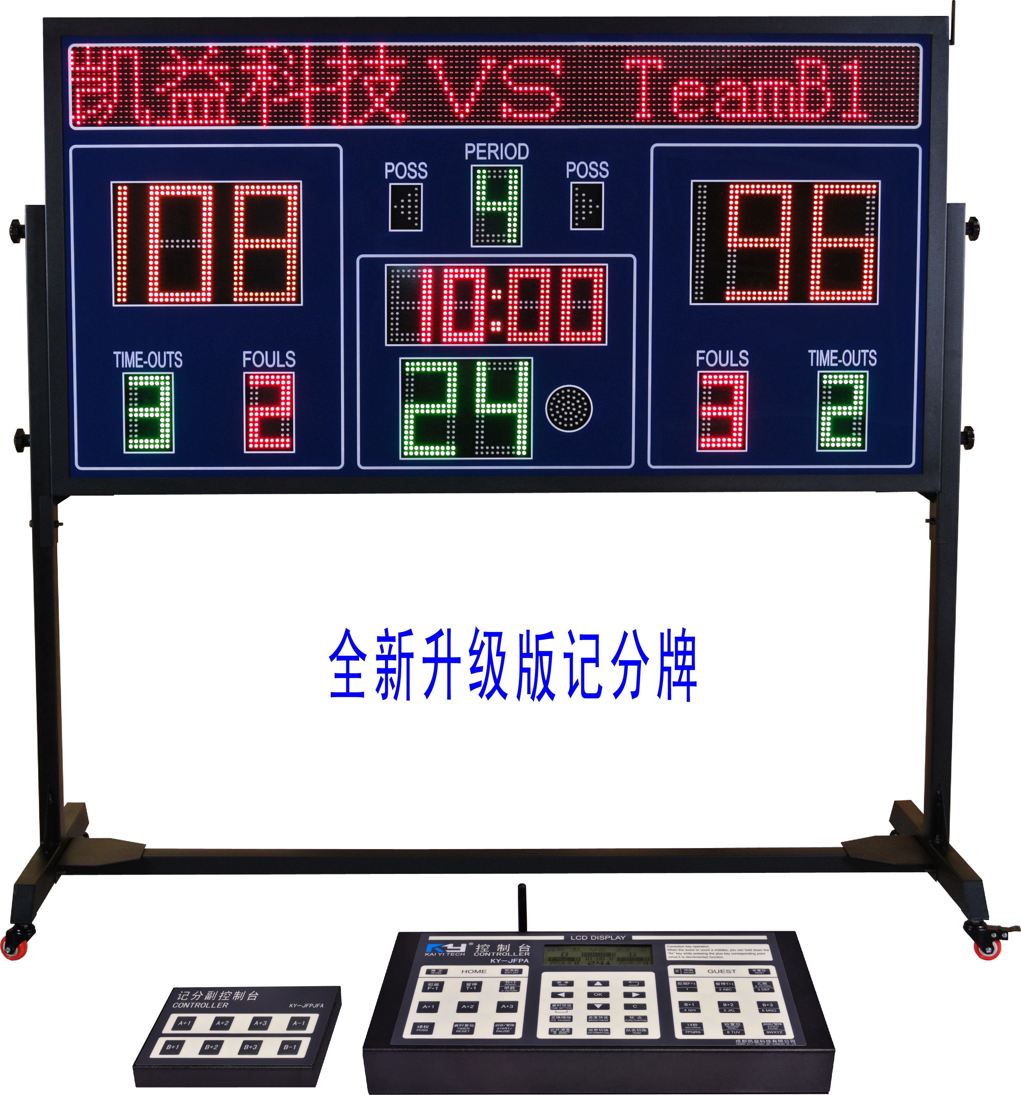 主要功能:主(客)队队名、临时信息、大比分、正计时倒计时比赛时间、24秒时间(进攻时间)、局/节数、球权、全队犯规显示以及暂停次数显示。