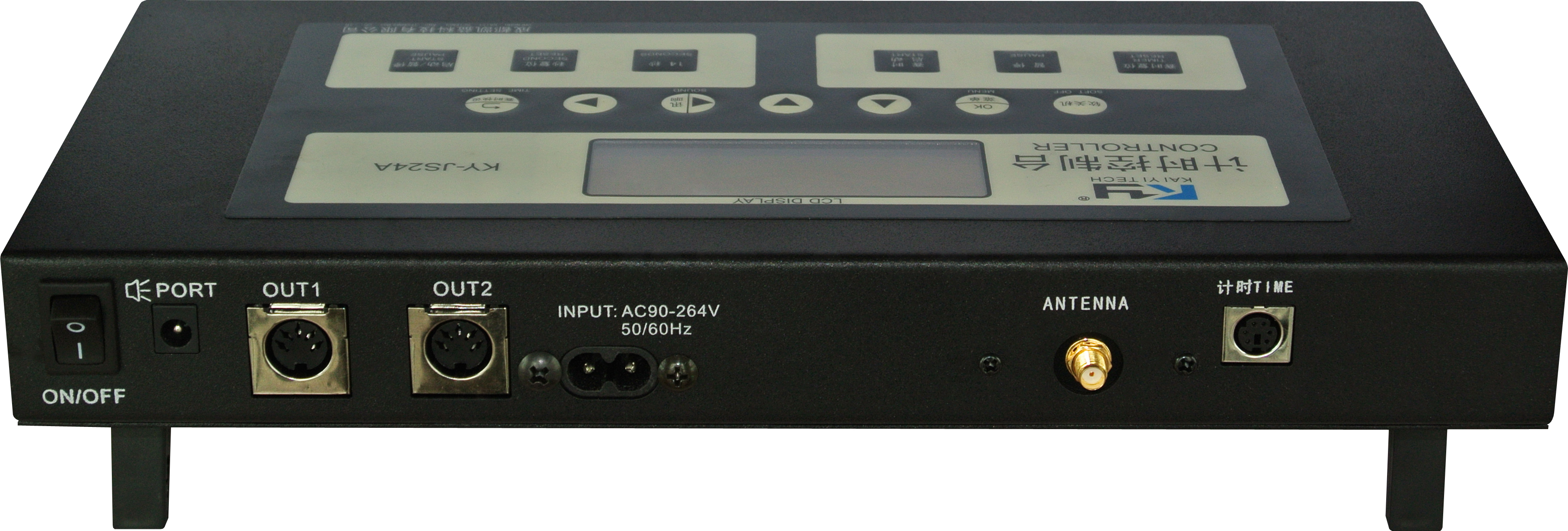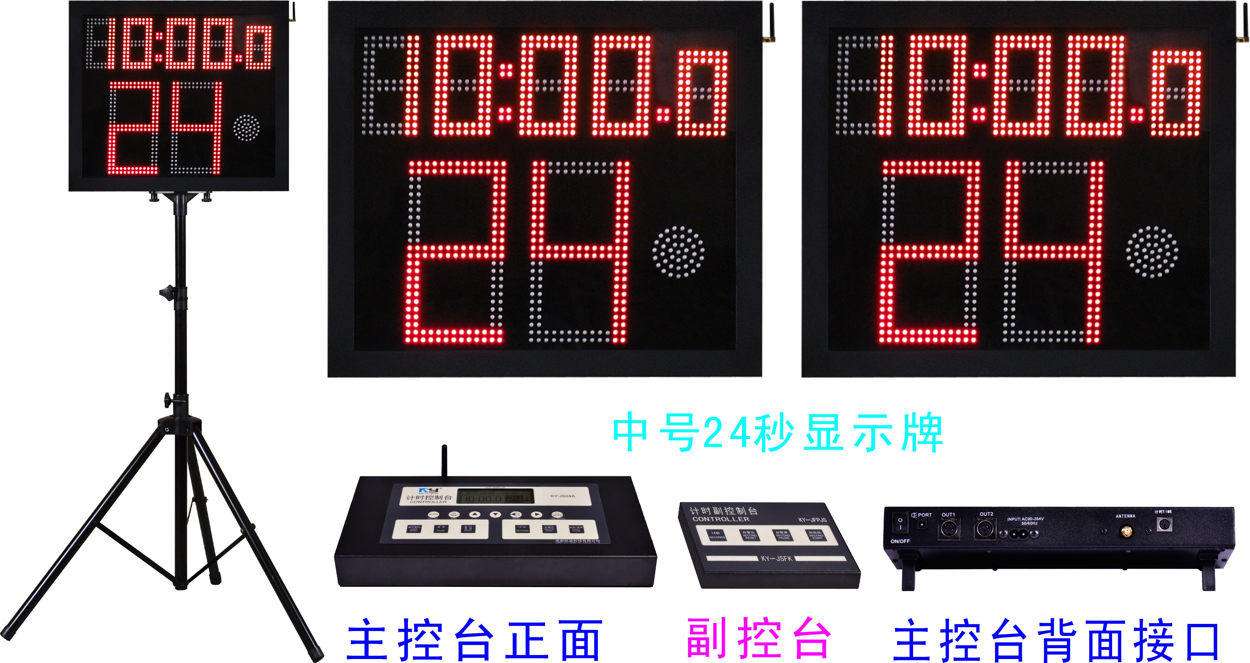 主要功能:0-99分59秒1/10秒和0-99秒倒计时或者0-99分59秒1/10秒和0-99秒正计时任意设置,倒计时至零和24秒违例或者正计时显示至设置值时自动三秒声光报警。